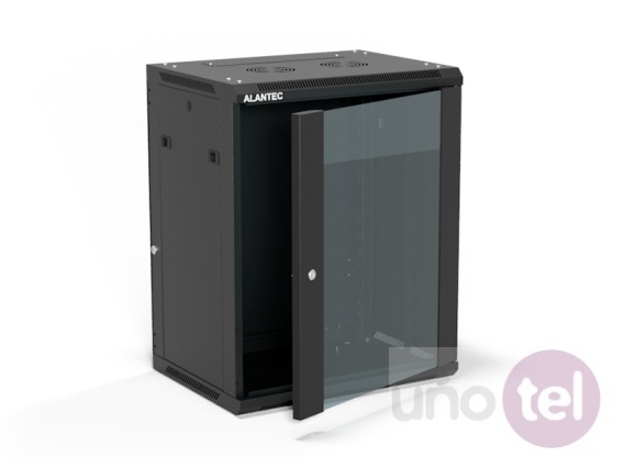 Szafa wisząca rack 15U 600x450, drzwi szklane, czarna, możliwość zmiany w szafę dwusekcyjną, Flat Pack