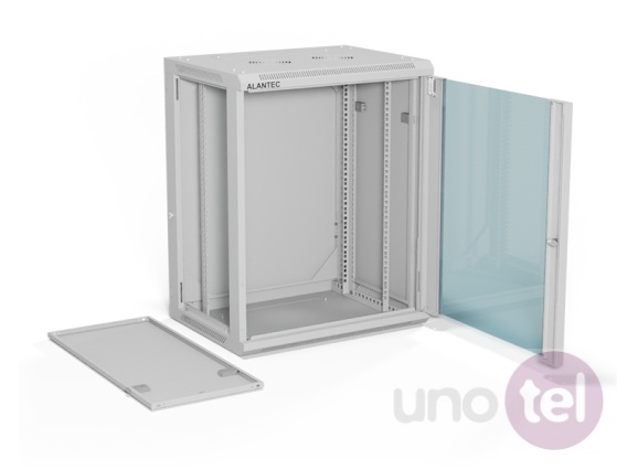 Szafa wisząca 19'' 15U 600x450, złożona, drzwi szklane, tył osłona pełna demontowalna, szara